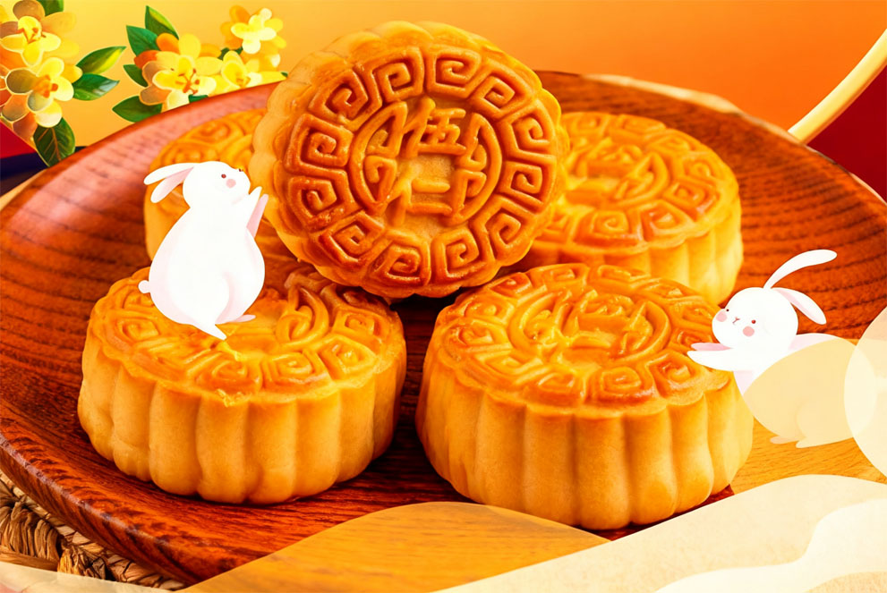 Tradičním jídlem jsou měsíční koláče, jejichž kulatý tvar představuje shledání a náplně, jako je pasta z lotosových semen, pasta z červených fazolí nebo směs pěti oříšků.